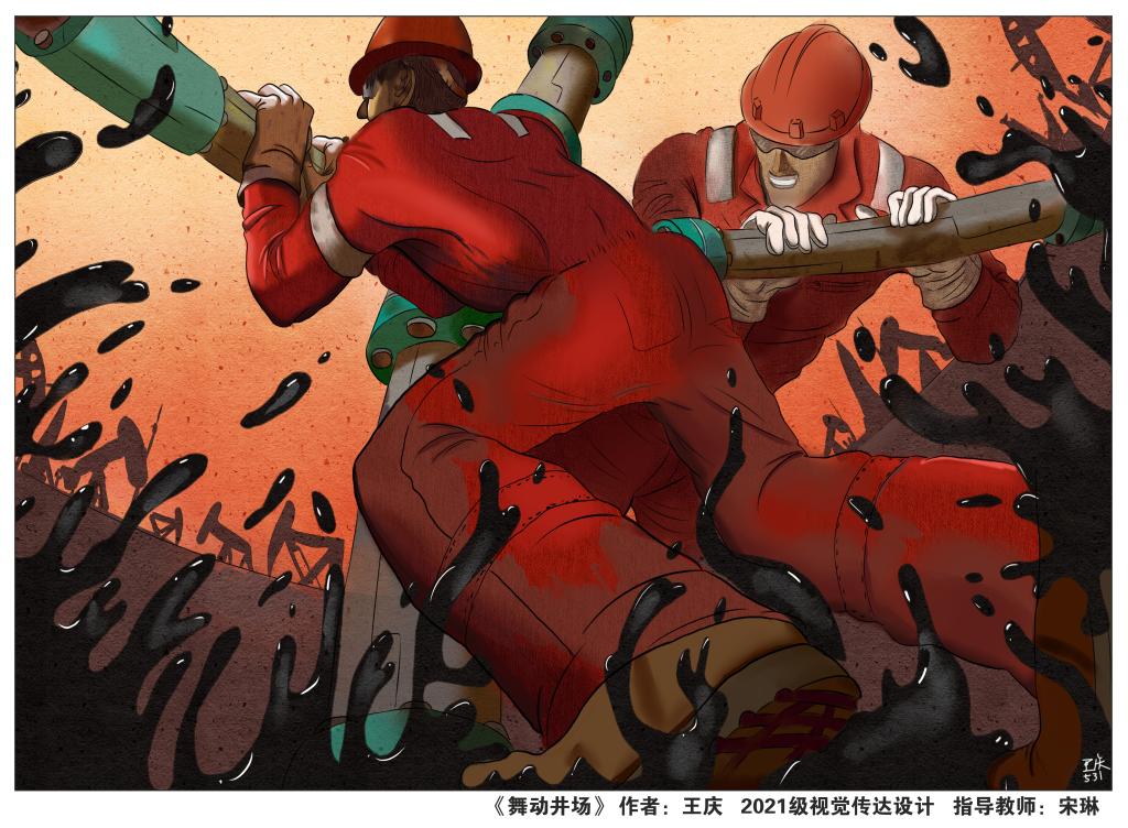 五、结合专业特色,推进主题教育。在课程教学中,通过在学生课堂作品中融入石油主题,使学生在了解大庆精神铁人精神的基础上,从艺术的角度去分析和提升作品的内涵。以“教学札记”的形式将专业技能课及学生课堂作业在网络平台进行展示,已经制作20期,同时利用双观图方式把铁人侧面剪影放在瓶器上,共制作80余件油陶作品;组织师生开展了主题为“赓续红色基因、弘扬铁人精神”的墙绘活动。让学生将课堂上所学到的知识付诸于实践,促进学生全面发展,提升学生服务社会能力,为地方经济做出应有的贡献。