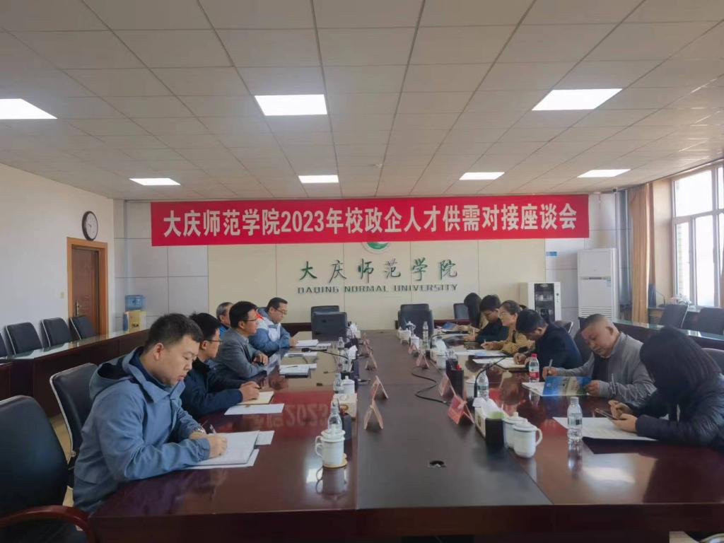 广州广畅教育科技有限公司总经理褚继红在发言中指出大庆师范学院与该公司密切合作了10多年,即使严峻的疫情形势也没有阻断双方的合作,为大庆师范学院向广东各地中小学输送了千余名优秀合格毕业生。学校毕业生基本功扎实、专业素质优秀、普通话标准、综合表现能力突出,受到了当地中小学校的广泛认可,成为了当地师资供给的响亮品牌。建议学校在大四学生实习就业一体化设计管理方面进行调整,切实保障学生实习、就业不间断。大庆经开区党工委副书记赵树财在发言中指出,大庆经开区与大庆师范学院有天然的地缘关系,在开发区快速发展建设过程中,需要为园区内不断入驻的企业提供人才资源支撑与供给、需要开展形式多样的服务企业培训、需要高校科研技术成果转化落地、需要大力实施校企联盟战略,为区校开展广泛深度合作提供了可能。下一步,将积极与学校对接,进一步加强特色培训项目、特色科研项目、特色人才共享、特色服务规划等方面深度合作,为校区、校企合作搭建更多更大的服务平台。其他企业代表介绍了本单位的企业整体情况、人才需求和岗位供给情况等,对学校专业设置、人才培养、校企合作等方面建言献策,希望进一步加强与学校的人才供给、促进就业方面的深度合作。